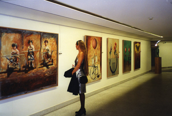 Big sized oil paintings of Marc Frising in the gallery "In the tunnel" of the Banque et Caisse d'Épargne de l'État in Luxembourg in 2000.(Photo Czilla Domjàn)